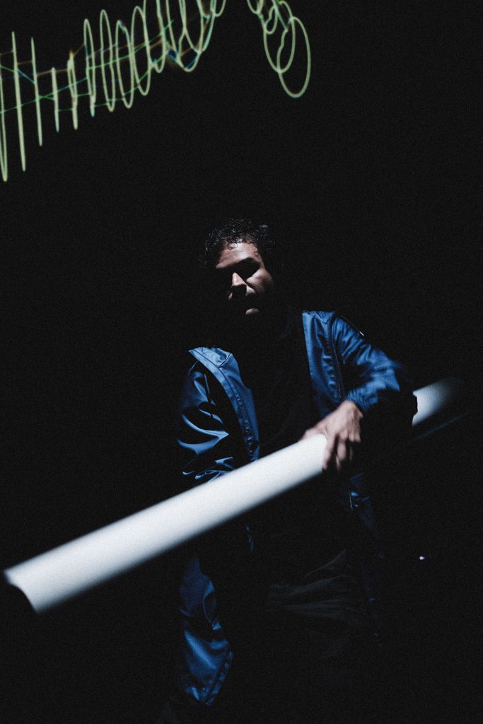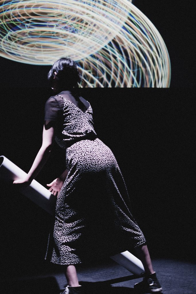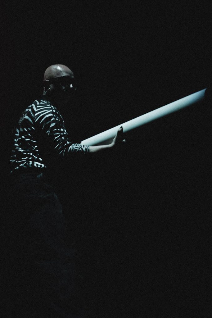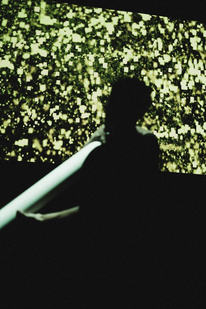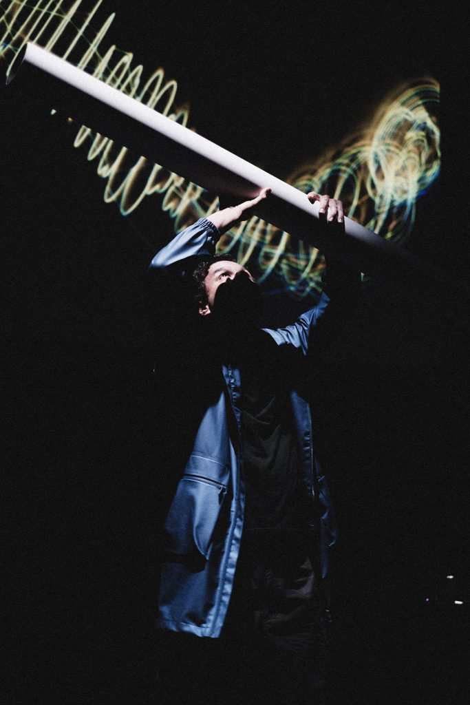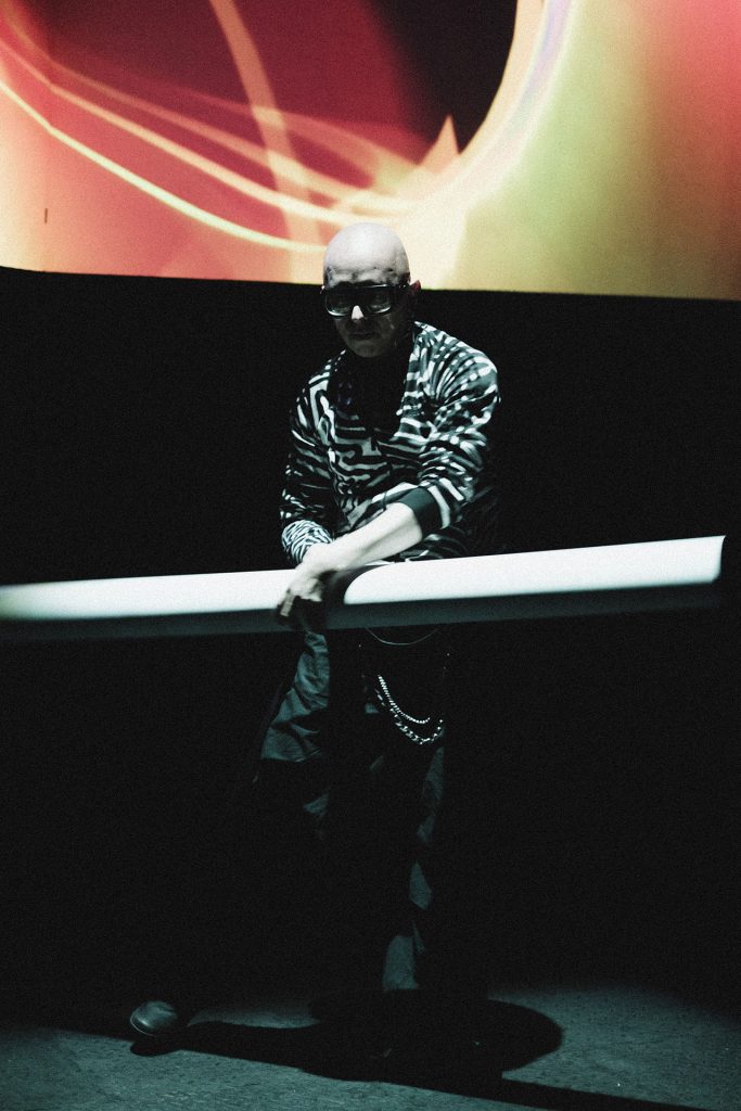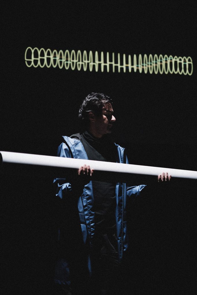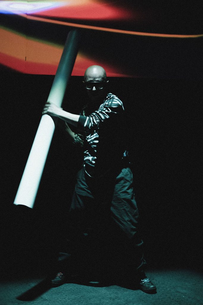 At the core of the experience is an electronic, sonic, and visual instrument activated by the inertia of its own mass.